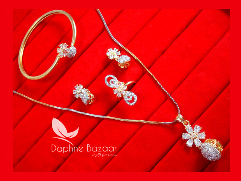 CBU32 Super Saver offer: Buy Online Four Items of Zircon Studded Silver Flora Fashion Thanksgiving Celebration –