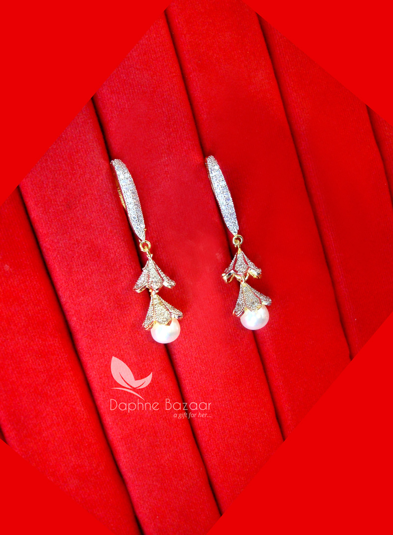 E95, Zircon studded Pearls Hangings Earrings for Girls