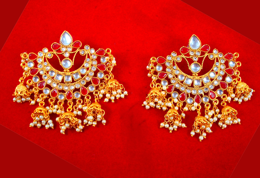JM87 Daphne Gold Plated Red Ethnic Traditional Handmade Jhumki For Women